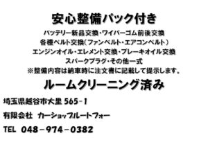 カーショップルートフォーではお客様のお求めやすい価格帯のお車を多数在庫しております。当店にてお客様の一台をお探しください。 当店の販売担当2名は国家整備士免許を所持しておりますのでご質問、ご相談等に対応できます。 ご購入後の車検・整備等のご相談もお気軽にお申し付け下さい。 お支払いも各種カード・オートローンにてお支払いOK! 従業員一同心よりお客様のご来店お待ちしております。